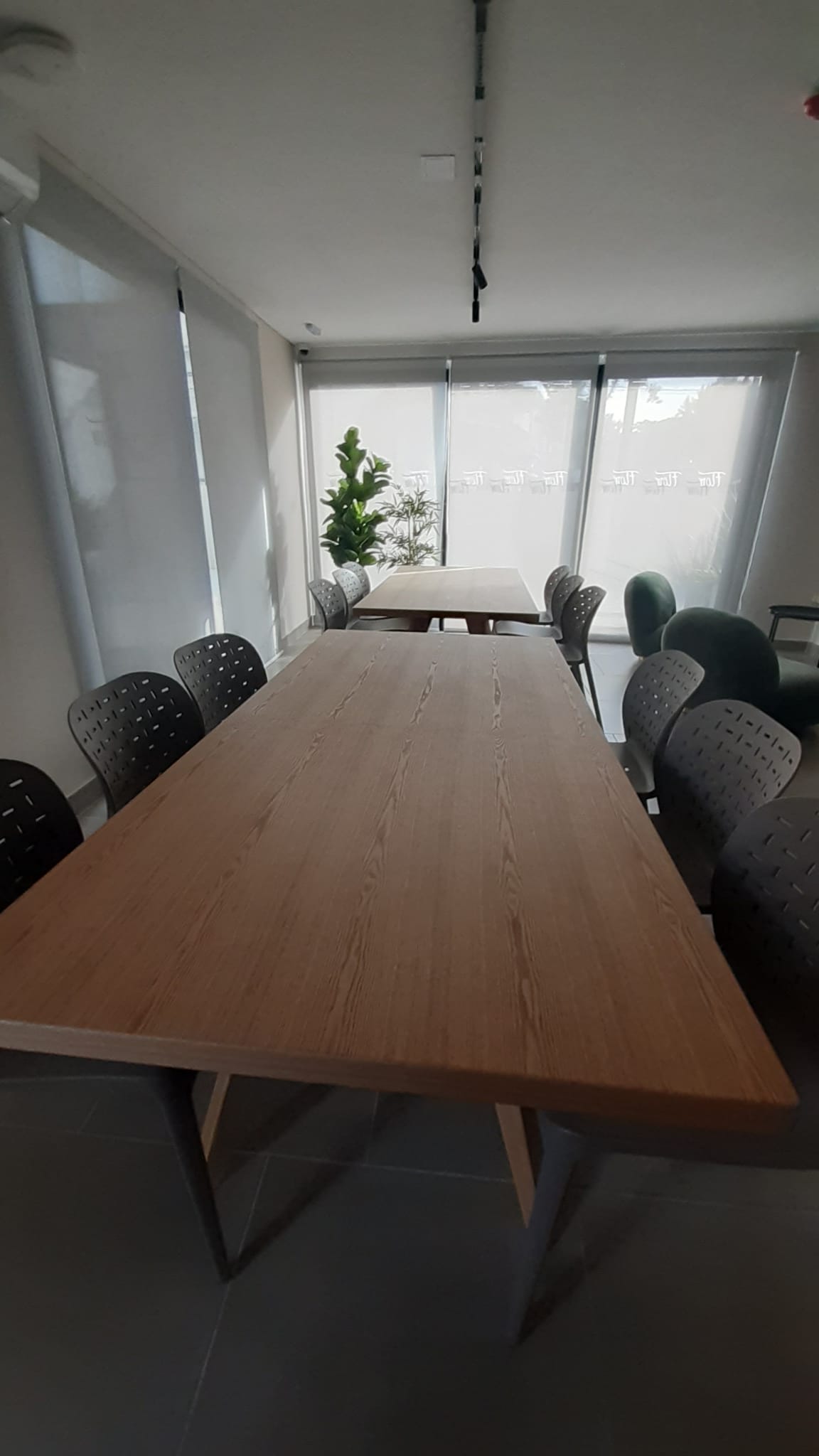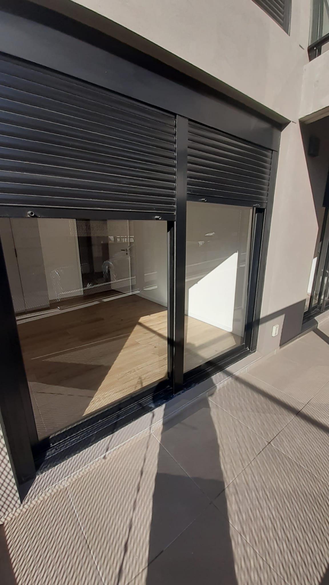 Puertas ventana en aluminio negro con cortina de enrrollar